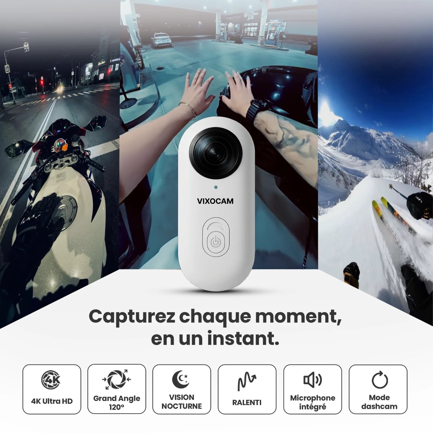 Pédalez, skiez, ridez, courez. VIXOCAM filme pendant que vous vivez l’action, pas pendant que vous pensez au cadrage.